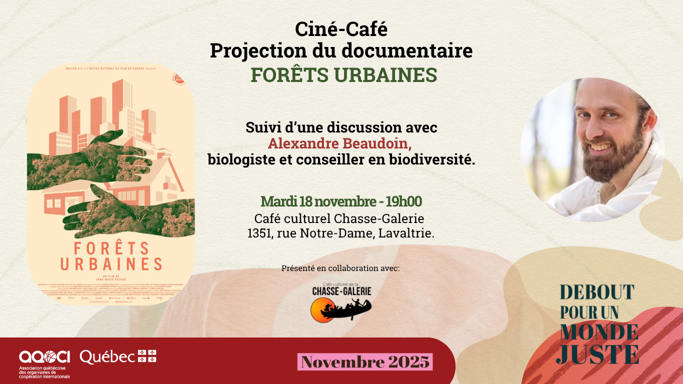 Dans un contexte marqué par les crises climatiques, les conflits et le recul des droits humains, la solidarité entre les peuples est plus essentielle que jamais. Joignez-vous à nous le 30 octobre pour deux panels sur l’environnement et la paix. Une occasion ouverte à toutes et tous pour s’engager vers un monde plus juste.