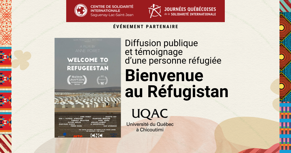 Dans le cadre des Journées québécoises de la solidarité internationale, le programme de coopération internationale de l’Université du Québec à Chicoutimi et le Centre de solidarité internationale du Saguenay-Lac-Saint-Jean vous invite à une diffusion publique du documentaire Bienvenue au Réfugistan, réalisé par Anne Poiret.