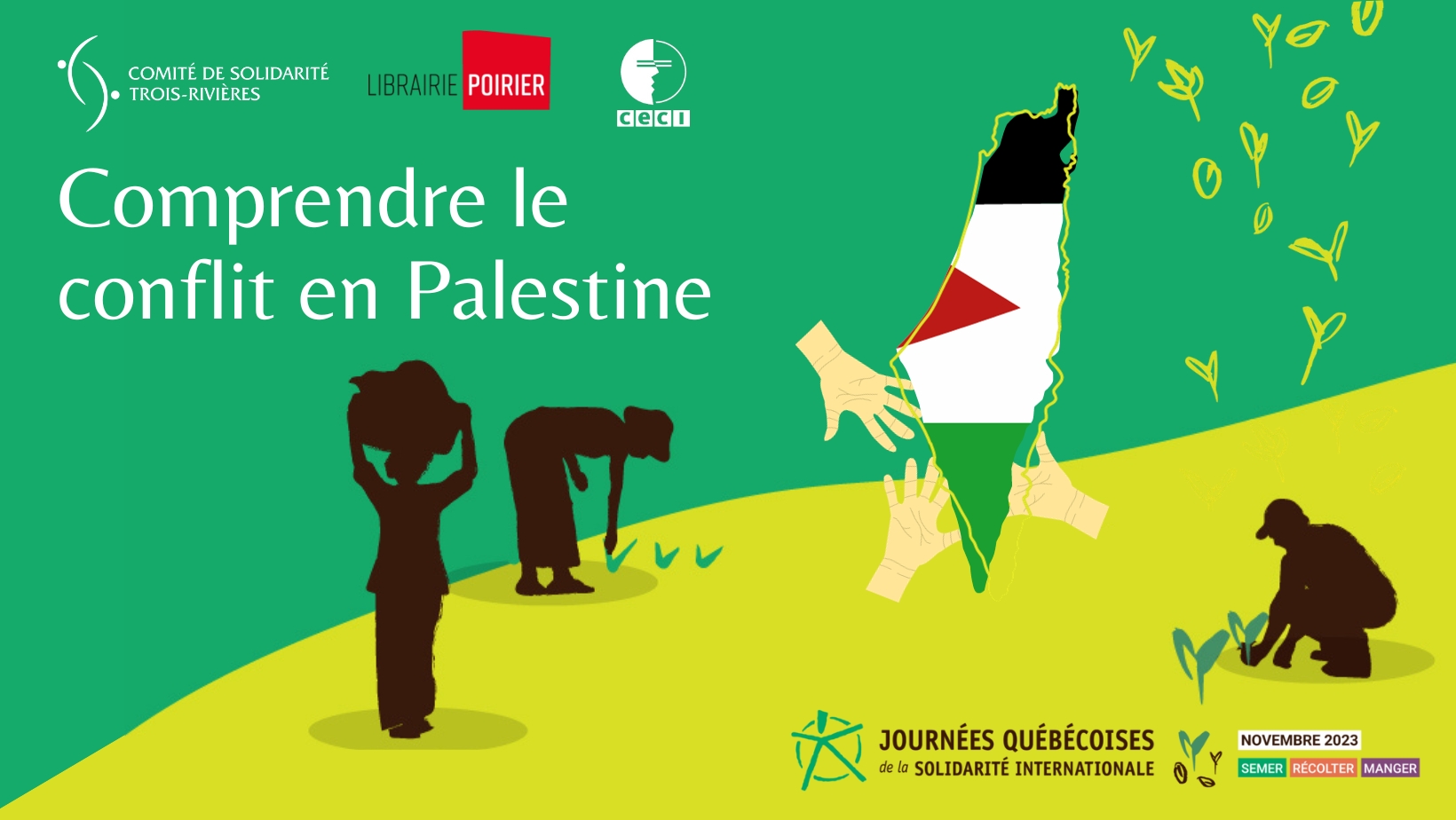 Nous vous invitons à une conférence portant sur le conflit en Palestine, lequel dure depuis maintenant 75 ans. Si l’existence même du conflit est généralement connue du grand public, la crise reste complexe, ses nuances et enjeux pouvant échapper à ceux qui ne portent pas un œil attentif à la situation. Quelles sont les origines du conflit ? Ses causes ? Comment cette crise est-elle vécue au quotidien par les Palestiniens ? Qu’en est-il du contexte international, du rôle du Canada ? Comment pouvons-nous agir ?