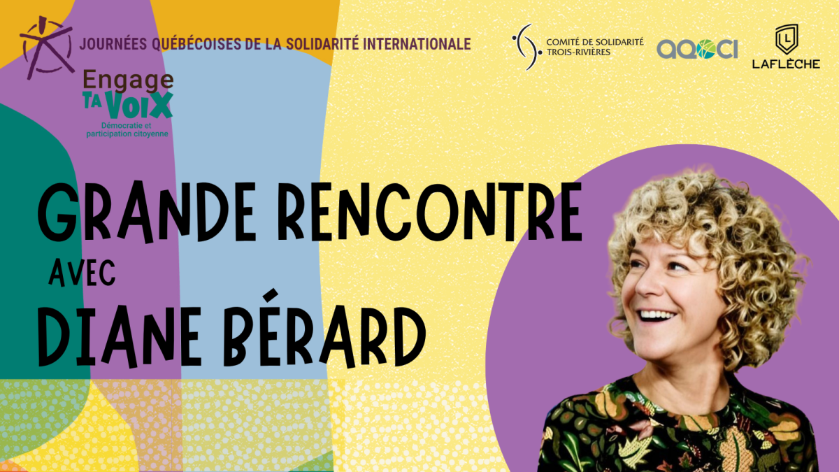 Dans le cadre des Grandes Rencontres du Collège Laflèche, venez à la rencontre de Mme Diane Bérard. En entrevue avec le professeur Ghyslin Demers, la journaliste et présidente du comité stratégie de l’Institut du Nouveau-Monde (INM) nous dévoilera sa vision de la démocratie et de la participation citoyenne.