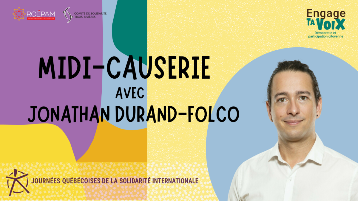 En collaboration avec le Regroupement des organismes d’éducation populaire autonome de la Mauricie (ROÉPAM), venez dîner et discuter avec Jonathan Durand-Folco de son plus récent livre Réinventer la démocratie : de la participation à l’intelligence collective.