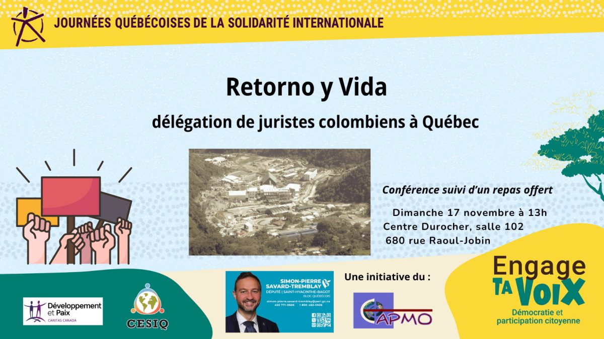 Une délégation de juristes colombiens de Retorno & Vida en tournée au Québec et en Ontario sera à Québec