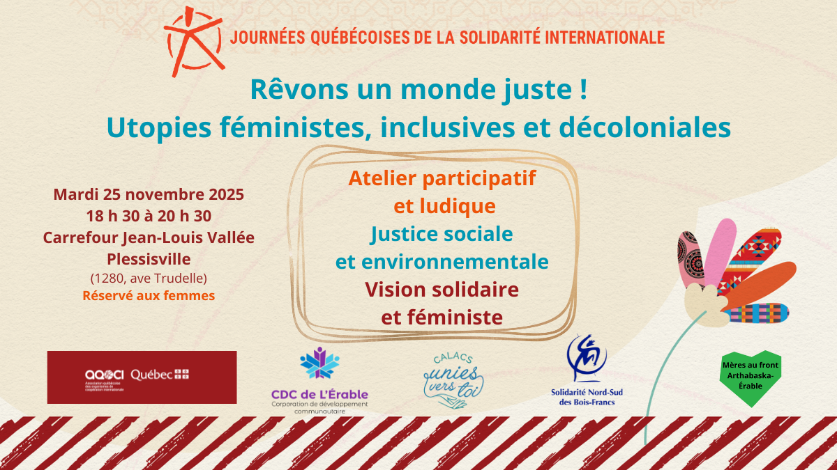 À quoi ressemble une civilisation durable, comment y parvenir et l’incarner ? Voici un atelier participatif dans une approche ludique, optimiste et centrée sur l’avenir ! Pour une suite audacieuse de la Marche Mondiale des Femmes du 18 octobre 2025, cet atelier est relié aux revendications de justice sociale et environnementale, avec une vision d’un monde juste, solidaire et féministe !